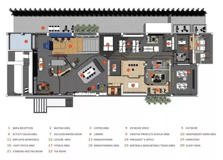 生活的三分之一甚至更多時(shí)間被工作充溢,高效并且健康的辦公方式對員工和企業(yè)來說至關(guān)重要,作為一個以辦公為主題的空間,功能性必然不能少。