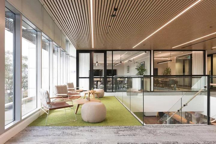 2020年深圳裝修公司設(shè)計(jì)風(fēng)格案例:環(huán)保、簡約明快、中央樓梯、苔蘚墻、垂直花園、自然元素、北歐風(fēng)、木色、肌理地毯,裝修公司設(shè)計(jì)旨在創(chuàng)建一個(gè)現(xiàn)代、開放、包容和連接的工作空間,去映射公司的價(jià)值觀和品牌文化。辦公室共跨越兩個(gè)樓層,包含了協(xié)作區(qū)、休閑區(qū)和私人會(huì)議室裝修等功能空間,所有的裝修設(shè)計(jì)和建造都符合公司的“愿望清單”。一道由鋼結(jié)構(gòu)、木踏步和玻璃護(hù)欄構(gòu)成的樓梯連接起上下兩個(gè)樓層,簡潔通透的設(shè)計(jì)確保視線的暢通連接。