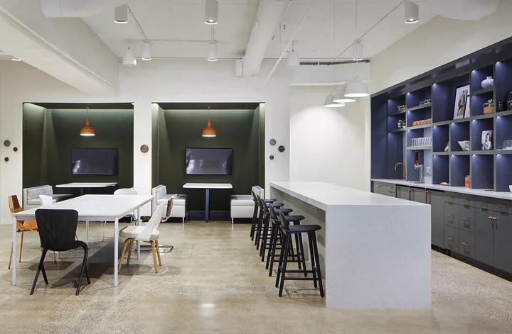 深圳裝飾公司設(shè)計團(tuán)隊?wèi)?yīng)用經(jīng)典的材料,金屬銅和軟木,與水磨石和混凝土形成材質(zhì)對比,構(gòu)建出展廳永恒而優(yōu)雅的空間背景。此外,還設(shè)有大量靈活的墻體、工作室、以及娛樂休閑空間,去應(yīng)對不斷演繹和變化的未來需求,以自身實踐講述著變革的故事。