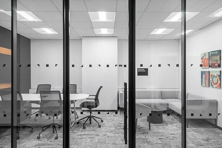 為了強調私人社區的概念,在咖啡廳休閑區安裝了Buzzi懸掛式屏幕系統,深圳裝修公司以創建相對獨立的空間,從而可以減少噪音并同時允許光線穿透。寫字樓裝修相鄰的會議室設計有透明的玻璃隔墻,進一步允許該空間在私人和公共互動中自由散布和變換。還有,每個樓層都有一個小型茶室,以強調為員工創建聚會和協作空間的重要性。