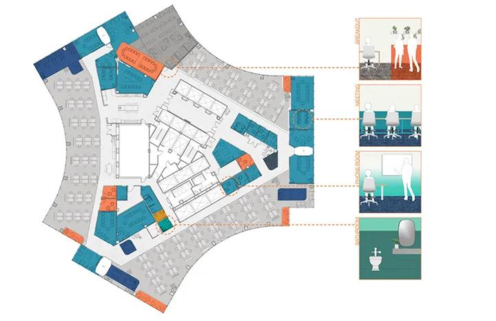 例如,一個(gè)供員工使用的大閱覽區(qū)位于兩層,設(shè)有許多私人休息室,巨大的協(xié)作工作臺,各種非正式空間,書架墻和游戲設(shè)施。母嬰室還有一個(gè)非常重要的功能。在這個(gè)多元化而龐大的工作小組中,包括一些即將成為父母的父母和有年幼子女的母親。因此,舒適的家具,天鵝絨窗簾和精美的漸變圖形墻紙經(jīng)過特殊配置,可為豪華酒店等酒店?duì)I造溫暖的空間,并彰顯公司對員工的密切關(guān)懷。通過以人為本的精心設(shè)計(jì),新擴(kuò)建的辦公裝修空間不僅可以滿足日常工作流程的流暢性,而且可以為員工創(chuàng)造舒適宜人的工作環(huán)境。憑借其充滿活力和多元化的設(shè)計(jì)熱情,歡迎每位員工以積極熱情的態(tài)度投入日常工作。