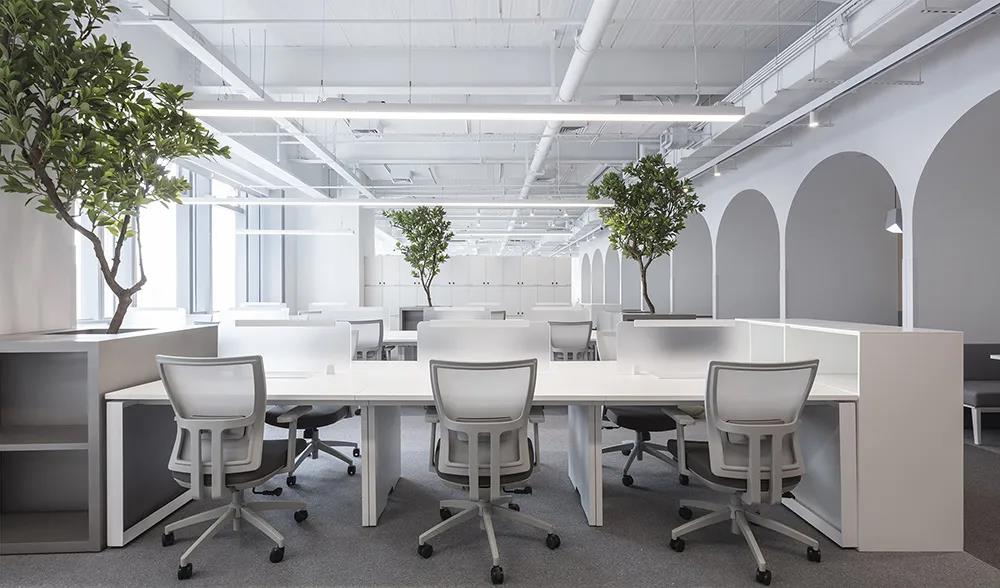 延續(xù)基調(diào)主題,工作區(qū)以白色為主,灰色為輔,以“干凈”“安靜”的空間孕育靈感。為了保證儲(chǔ)物需求,儲(chǔ)物柜巧妙地設(shè)置在地板分散的中間區(qū)域,深圳裝修公司以滿足員工的需求,豐富整個(gè)空間,保持布置整潔。這與白色的噴漆裸天花線條縱橫交錯(cuò),豐富了整個(gè)空間的層次感。