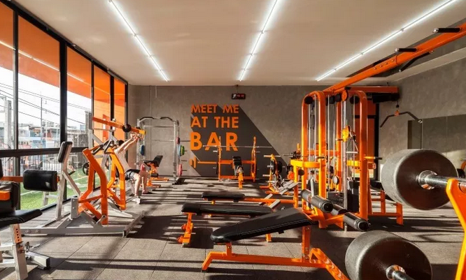 幫助客戶了解這一概念的主要特征是使用顏色、環境圖形和照明來定義這個特定的空間。 深圳店鋪裝修公司選擇橙色讓精力充沛的感覺和連續性的步驟在主入口樓梯導致的主要接待和有氧運動空間在二樓,和橙色到頂面的主要慢跑跑道分別在三樓。